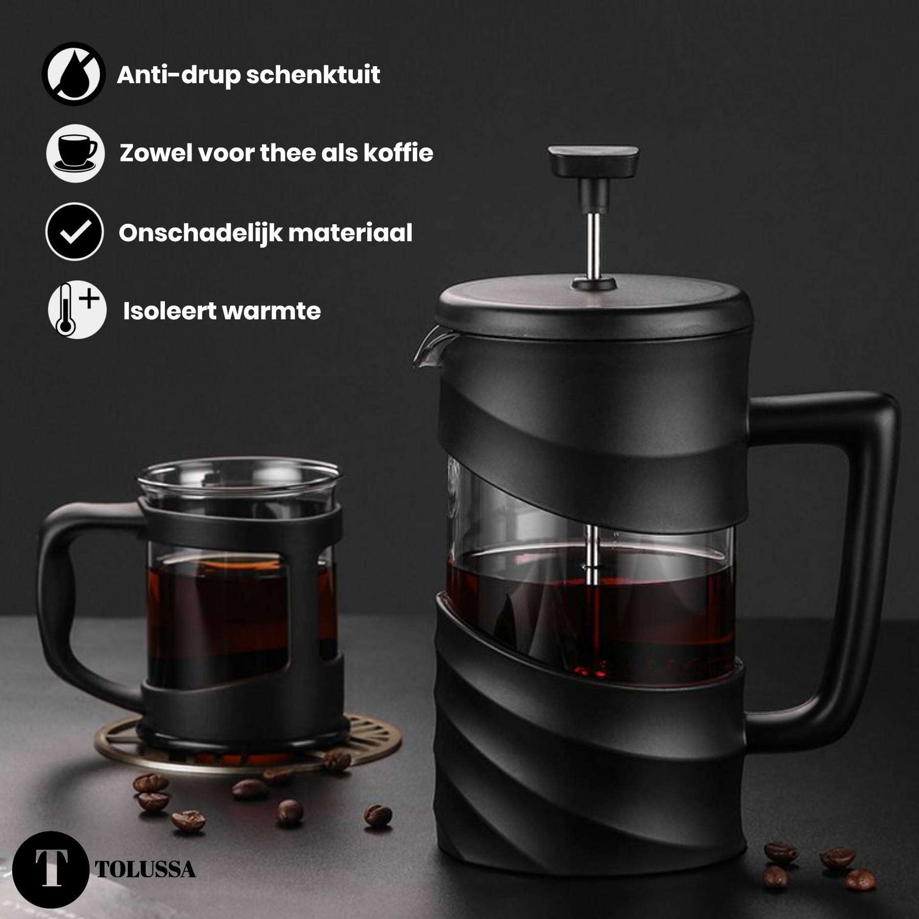 De French Press wordt vaak niet op de juiste manier gebruikt helaas en daardoor wordt niet het maximale uit het genot van koffie gehaald. Met de Tolussa French Press gaan wij ervoor zorgen dat jij én een stijlvolle French Press hebt en dat jij het maximale uit jouw koffie haalt!